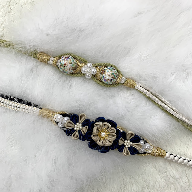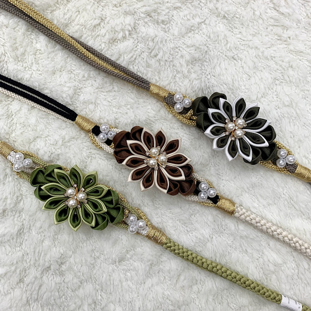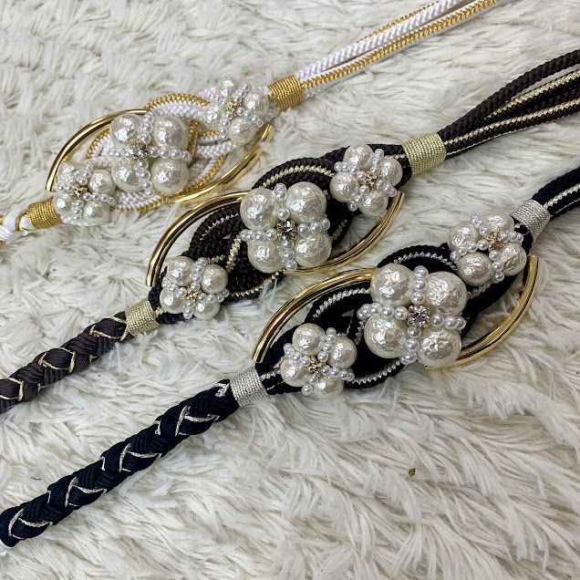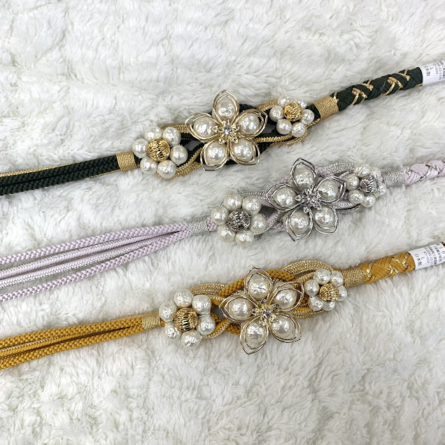 パールを使った洋風の帯締めもいろんな種類ご用意しております!