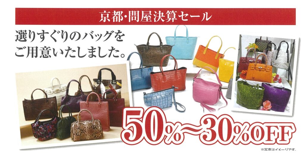 今回の問屋決算セールは、お着物とバッグの2本立て!