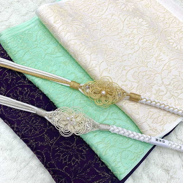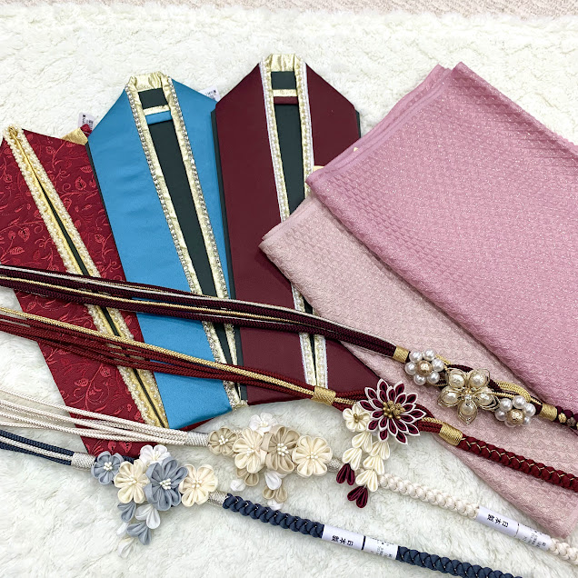 今回は、帯締め(おびじめ)、帯揚げ(おびあげ)、重ね衿(かさねえり)が入ってきました!