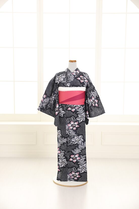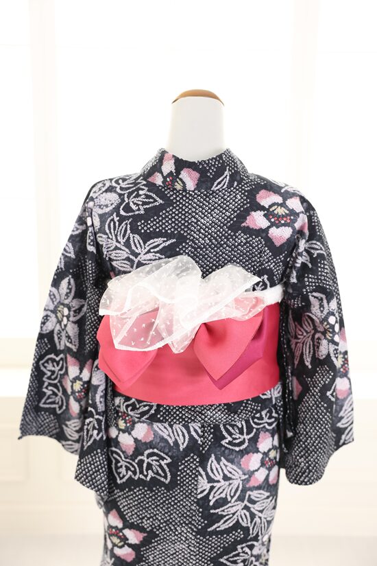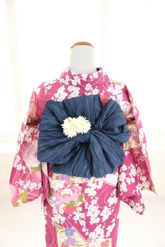 浴衣に使われる代表的な帯(おび)で、幅が約15cmと細め。しっかりした生地で形が決まりやすく、文庫結び(ぶんこむすび)など定番の結び方にぴったり。きちんと感が出せるので、大人っぽい印象にしたいときにも◎。