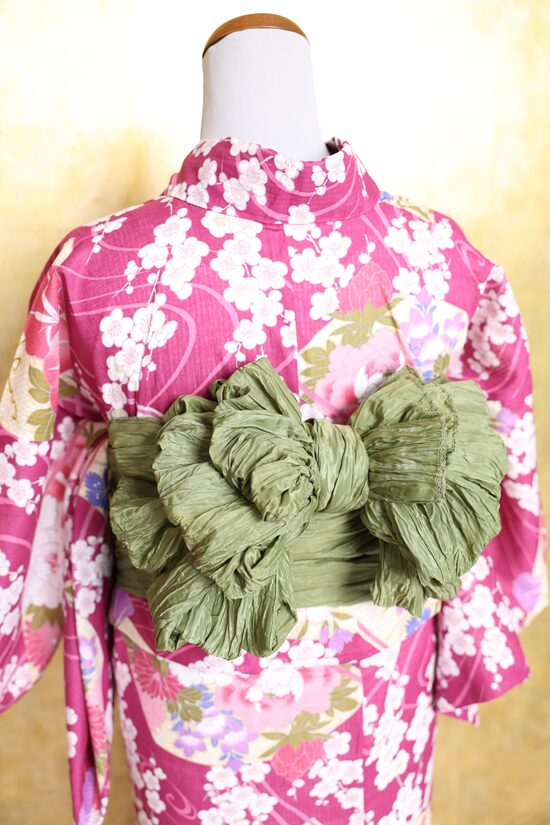 柔らかい布でできた帯で、ふんわりとしたボリュームが出せるのが特徴。結ぶのも簡単で、ガーリーな雰囲気やトレンド感を出したいときに人気。最近ではレースや透け感のある素材も登場し、おしゃれさんに選ばれています