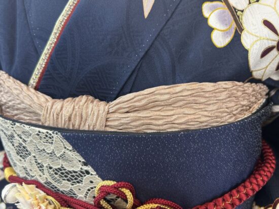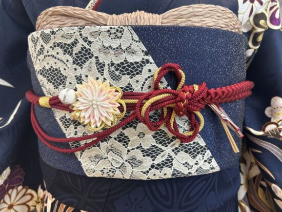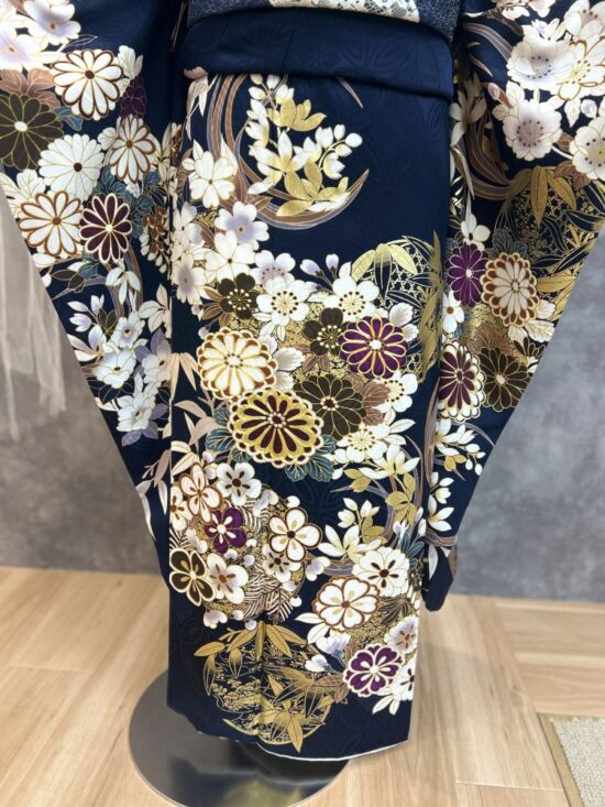 紺色の振袖に金彩とレースが織り成す伝統とモダンの融合