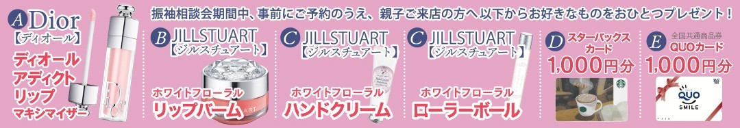 事前予約をしてご来店でもらえる、【選べる予約特典】や、