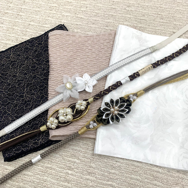重ね衿(かさねえり)や帯締め(おびじめ)など定番でついているシンプルなものと違い、
