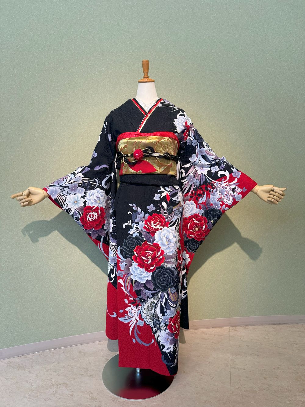 バラや乱菊など華やかで、個性的なお振袖を選ぶお嬢様も多いです(^^♪