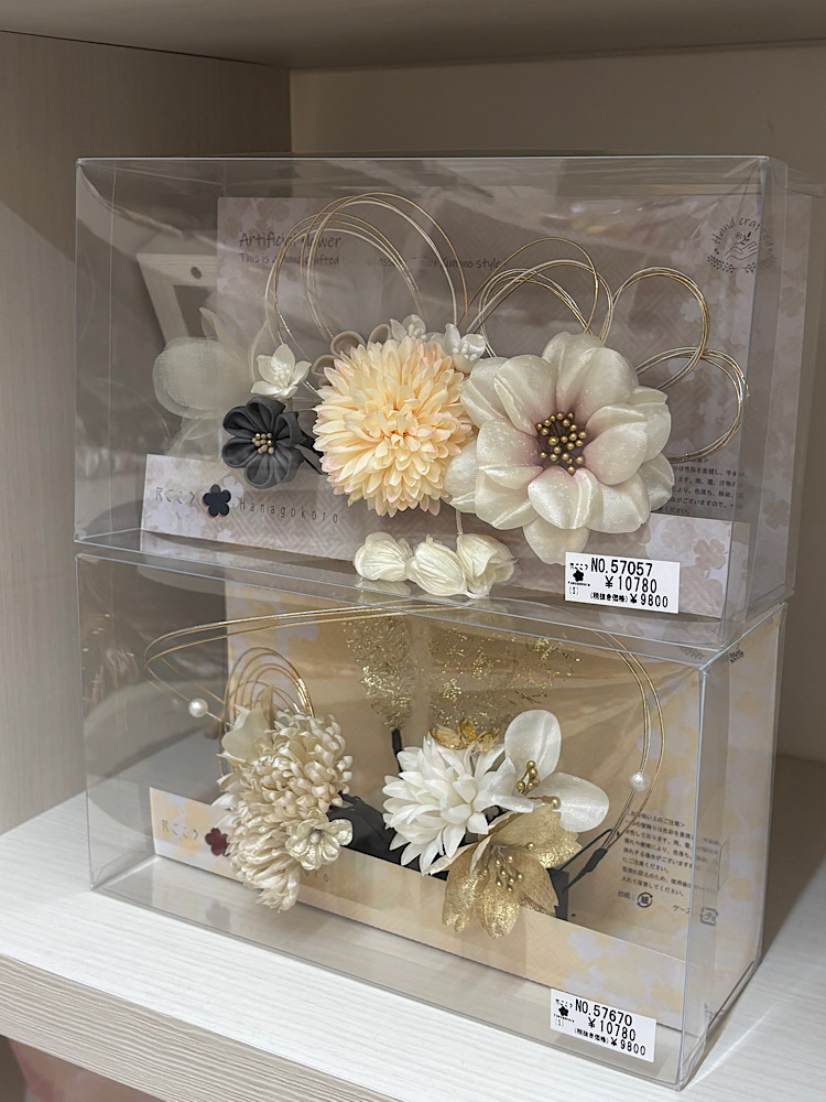 華やかな髪飾り(かみかざり)を選んで、振袖と一緒にコーディネートすると、