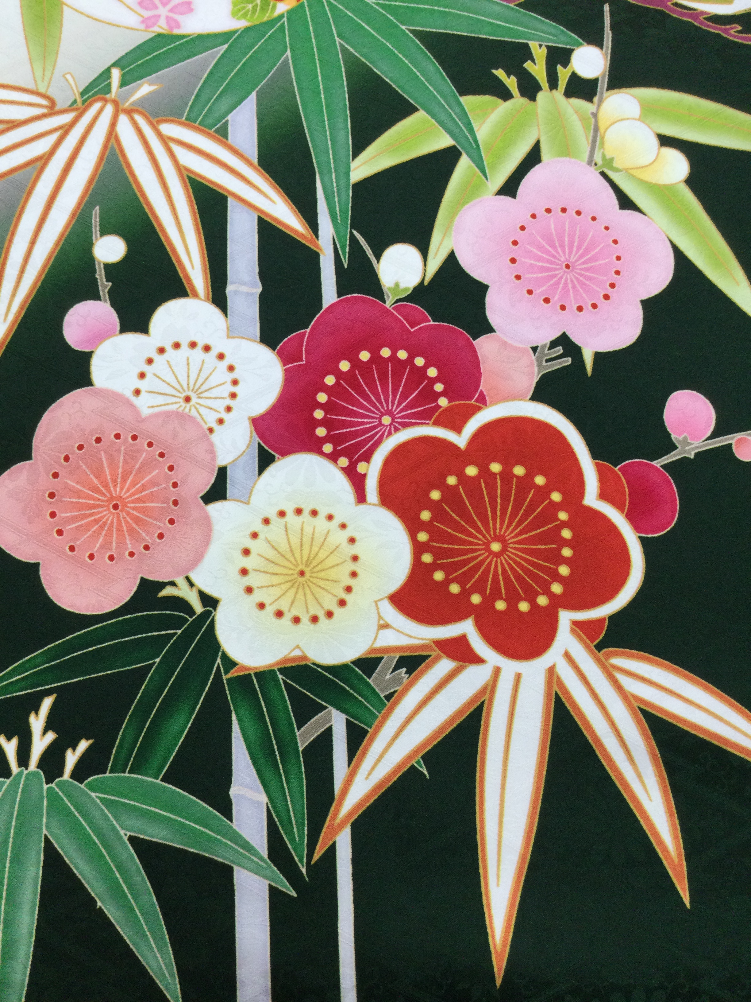 寒さの中で花を咲かせる梅は、「困難に負けない強さ」や「上品さ」を表す柄。