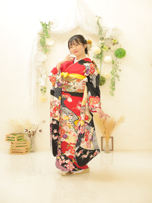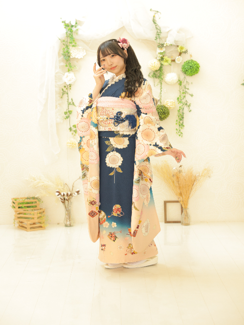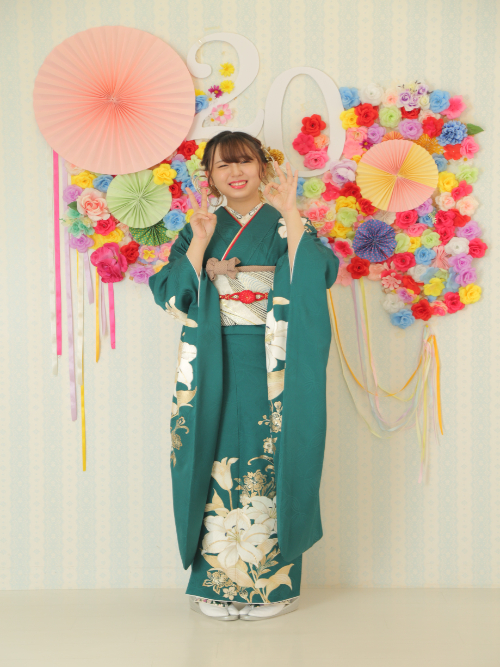 ロイヤルブルーやネイビーといった深みのある青はもちろん、爽やかなターコイズも人気です。青は柄が映える色なので、白や金のアクセントを効かせると、格調高くスタイリッシュにまとまります。写真撮影でも上品さが際立つので、成人式後も見返すたびに満足感が高いと評判です。