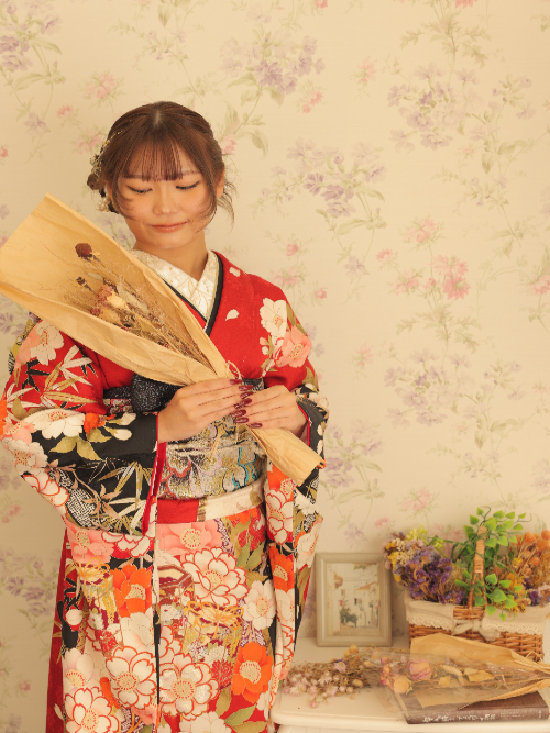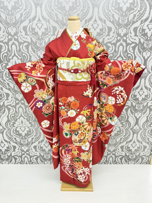 振袖の定番カラーといえば、やはり「赤」。昔から「魔除け」や「幸福」を象徴する色として親しまれており、成人式でも根強い人気があります。
