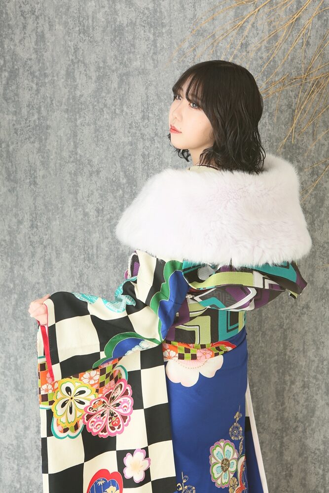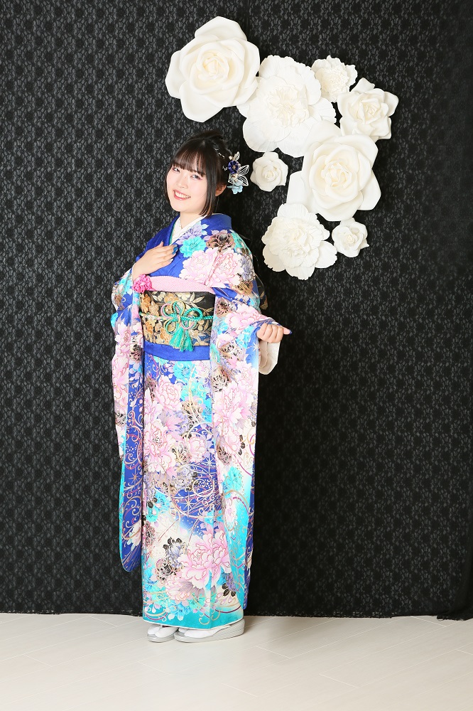 青色振袖コーディネート:凛とした美しさで魅せる“クールビューティー”