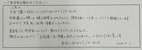 ここでは、昨年度実際に当店で卒業袴をレンタルされたお客様の声をご紹介します!