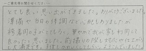 また、撮影日の1週間前になりましたら服装や天候のご連絡をしております。