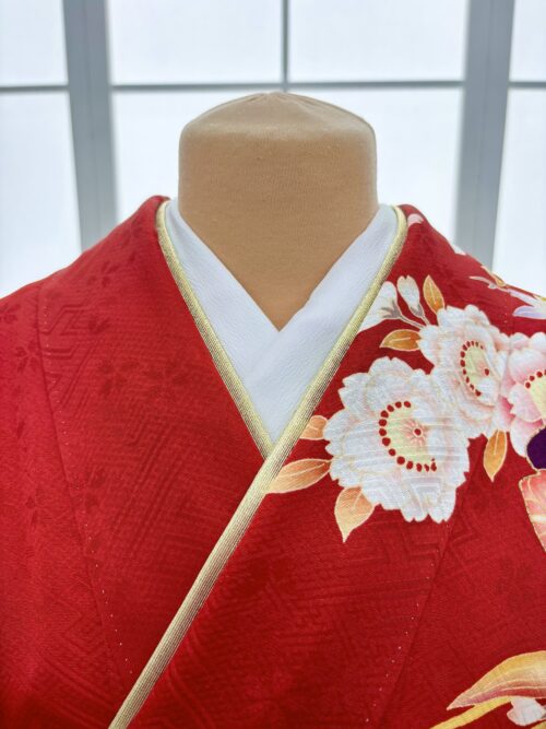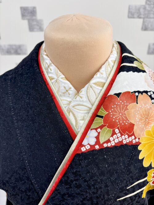半衿:金刺繍 + 重ね衿:赤