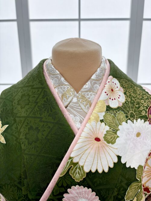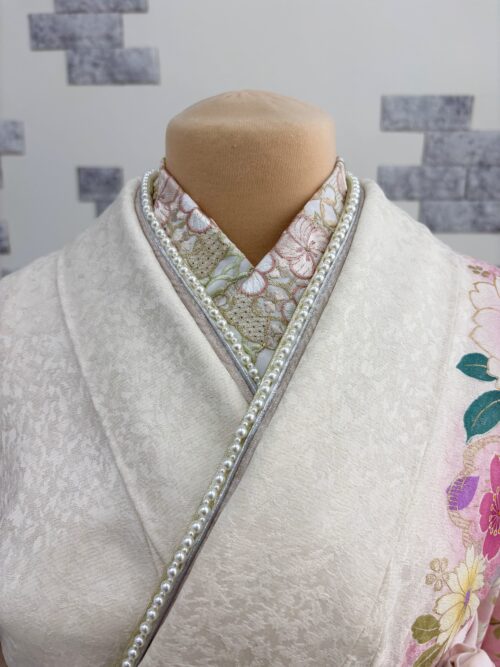 - 半衿:くすみピンクと抹茶 + 重ね衿:パール