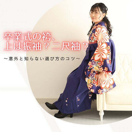 それぞれに袖の長さ・着用シーン・華やかさが異なります。「袴(はかま)だから振袖(ふりそで)じゃなきゃダメ!」というわけではなく、自分に合ったスタイルを選ぶことが大切です。