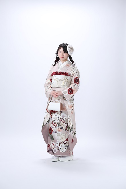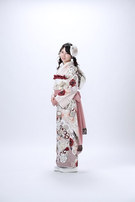 同じ振袖でも、帯揚げをピンクにチェンジし、フリルで作ってあげると一気に可愛らしい雰囲気に。