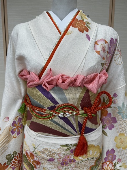 - 帯揚げ:ふんわりピンクやラベンダー系
