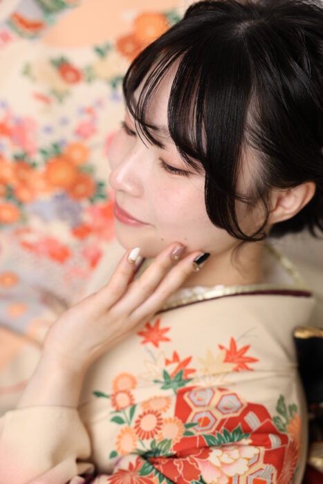成人式のメイクでは、このパーソナルカラーを意識することで「着物に映える」メイクが完成します。