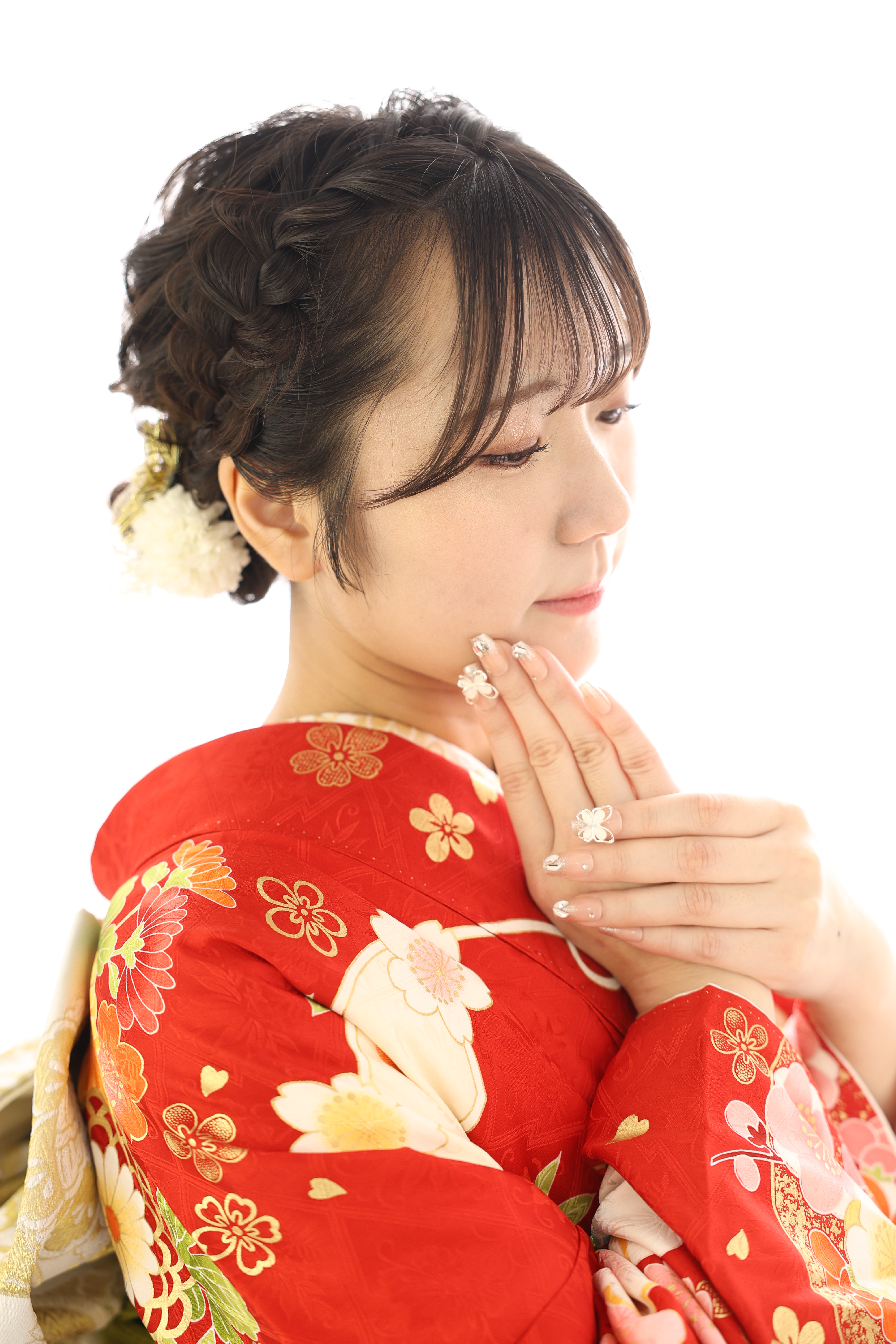 髪型が決まると、髪飾り選び、振袖の色合わせ、ネイルや小物選びもどんどん楽しくなります♪