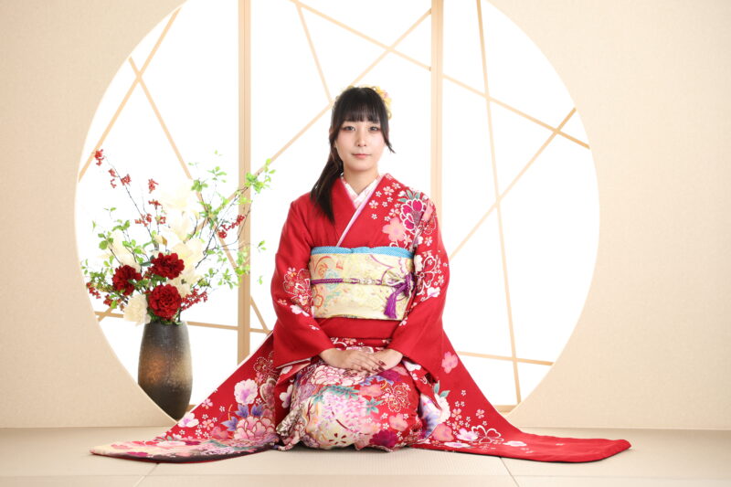 - 座るときも背筋を伸ばし、振袖を引っ張らないよう注意。