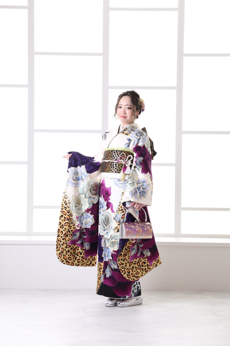 - 袖を少し前に出すと、振袖の華やかさが引き立ちます。