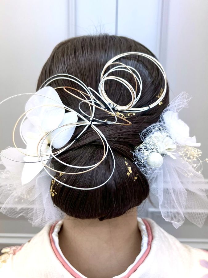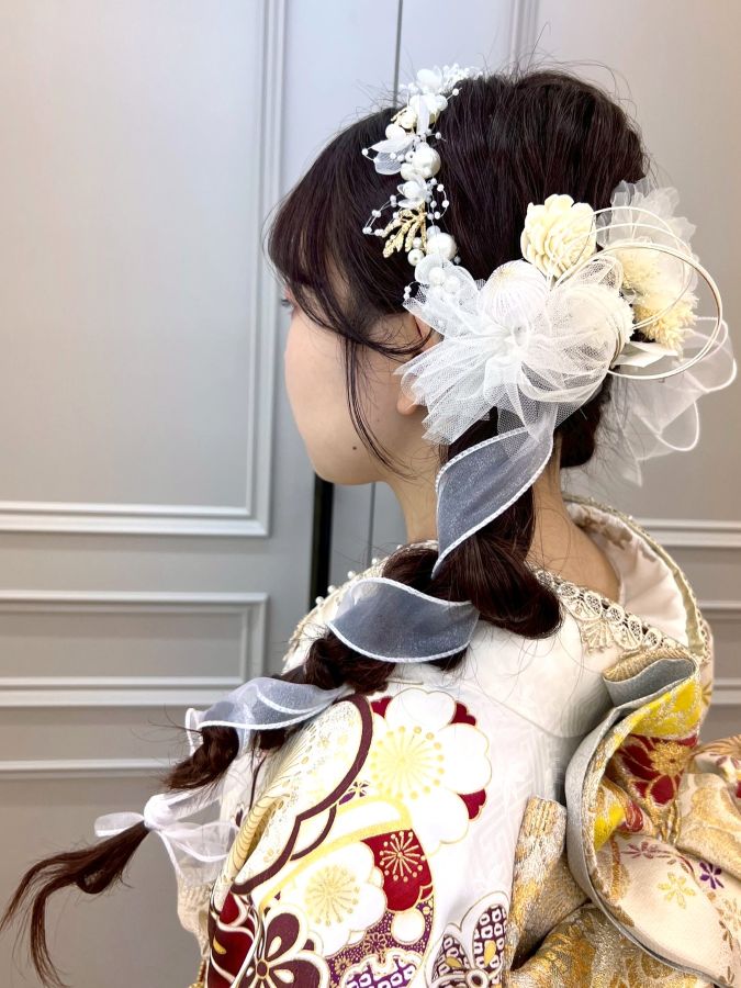 特に「白・ゴールド」の髪飾りはどんな振袖にも合う「最強の万能選手」として活躍しました。