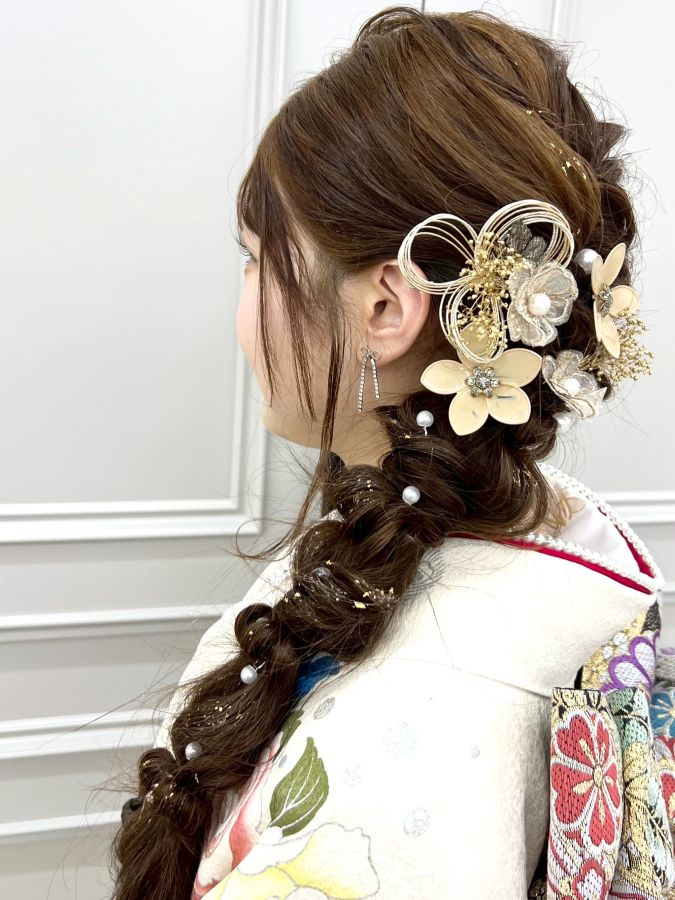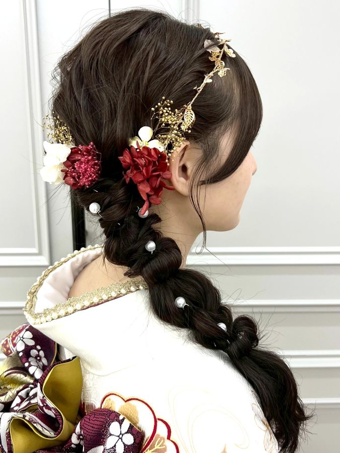 振袖のトレンドヘアは袴や浴衣、ドレスなどの洋装にも応用可能です。