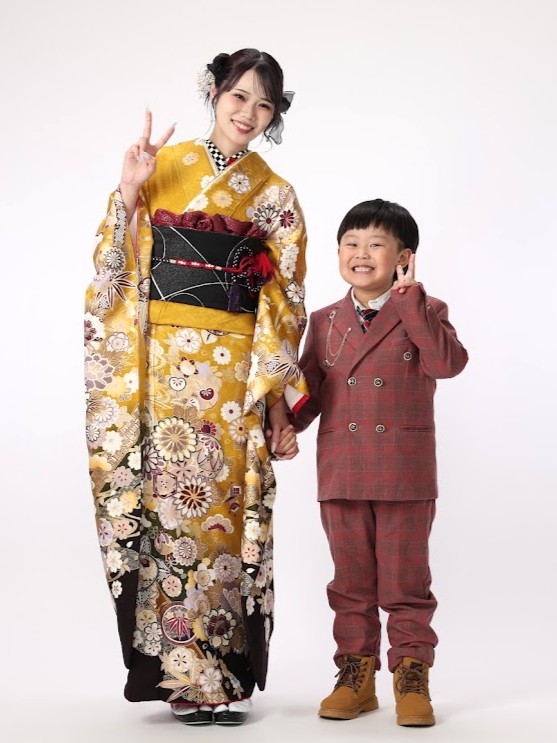 スーツ姿や羽織袴(はおりはかま)姿のお兄様と振袖姿の妹様。
