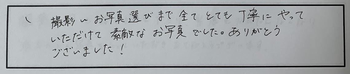 撮影~お写真選びまですべてとても丁寧にやっていただけて素敵なお写真でした。