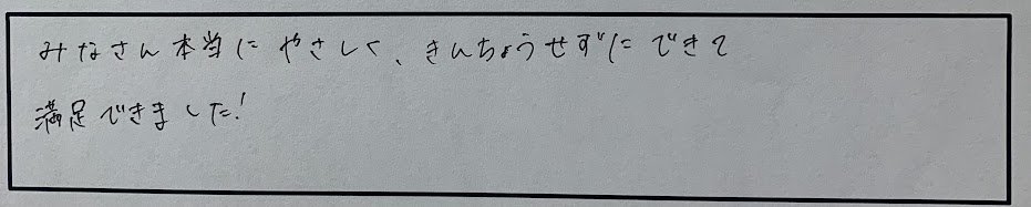 みなさん本当にやさしく、緊張せずにできて満足できました!