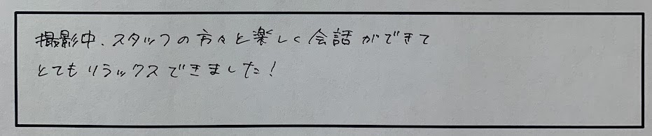 スタッフさんがみなさん優しくて楽しく写真がとれました!