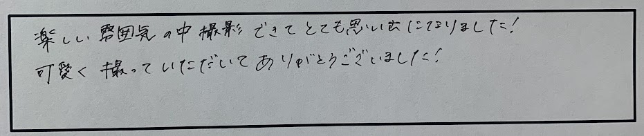 ご家族皆様も来ておりいろんなお話をしながら撮影できて私たちも楽しかったです(*’▽’)