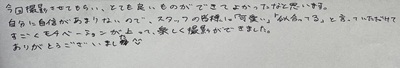 すごくモチベーションが上がって、楽しく撮影ができました。
