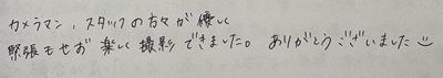 緊張もせず楽しく撮影できました。ありがとうございました😊」