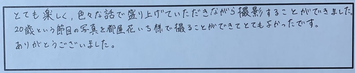 20歳という節目の写真を都屋花いち様で撮ることができてとてもよかったです。ありがとうございました。