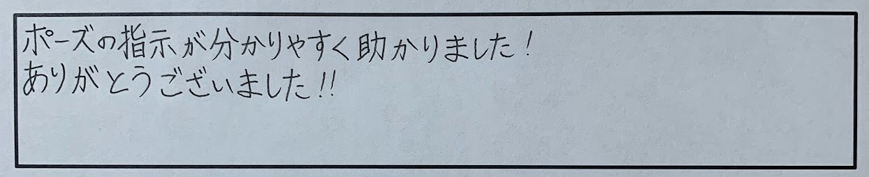 とても楽しく、いろいろな話で盛り上げていただきながら撮影することができました。