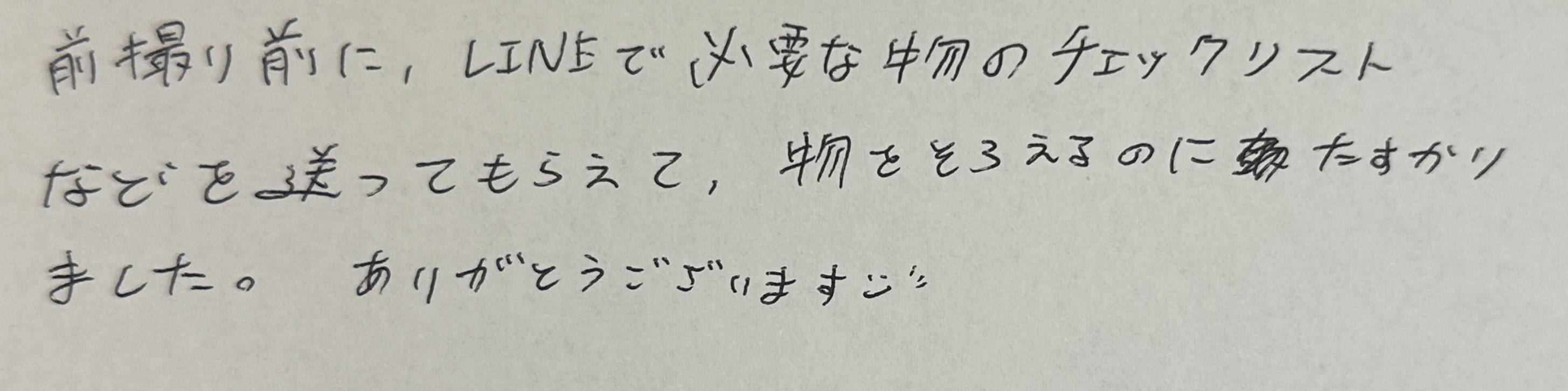 「前撮り前に、LINEで必要な物のチェックリストなどを送ってもらえて、