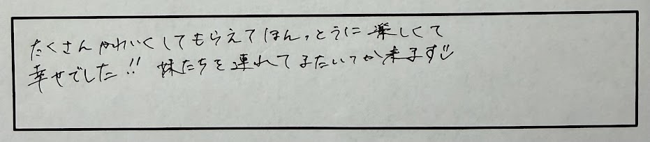 たくさん可愛くしてもらえてほんっとうに楽しくて幸せでした!!妹たちを連れてまたいつか来ます