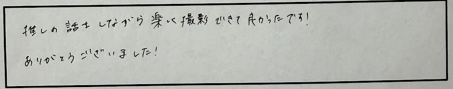 前撮り撮影ありがとうございました!推しの話でとても盛り上がりましたね!