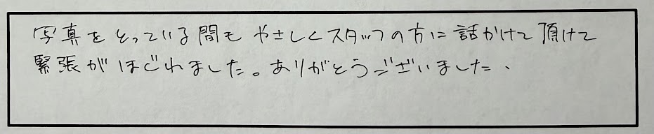 写真を撮っている間も優しくスタッフの方に話しかけていただけて