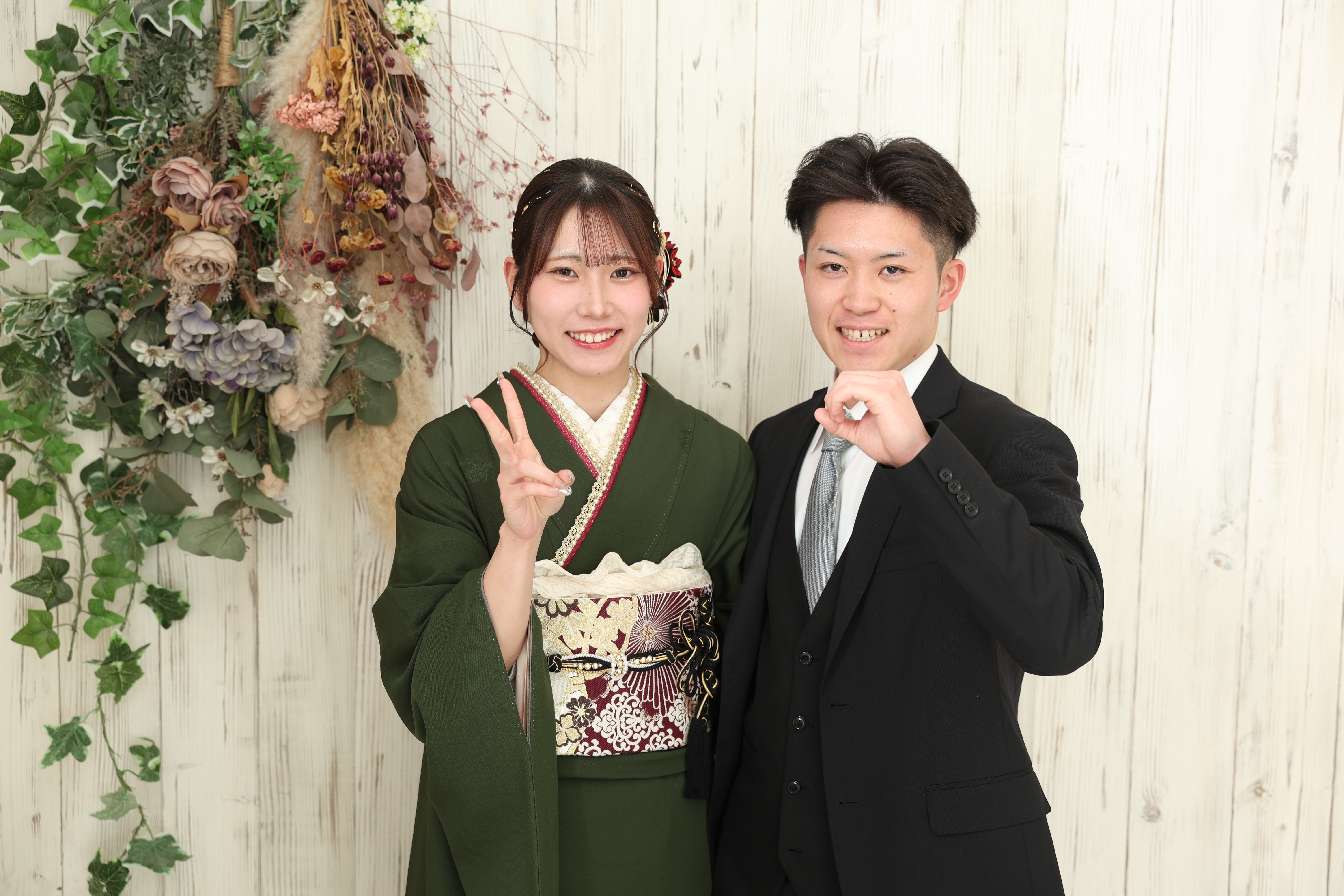 赤のお振袖も、緑のお振袖も両方お似合いで笑顔もステキでした!!
