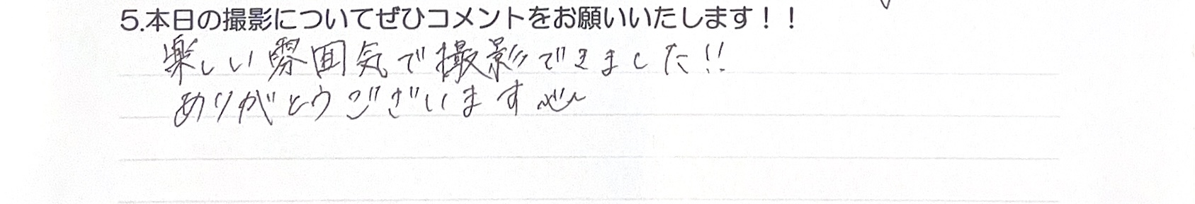 ございます!とてもやさしくあたたかい雰囲気の中で撮影させていただけて楽しかったです!