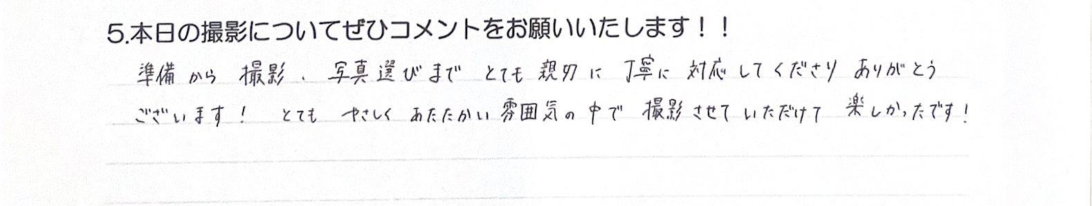 準備から撮影、奢侈運選びまでとても親切に丁寧に対応してくださりありがとう