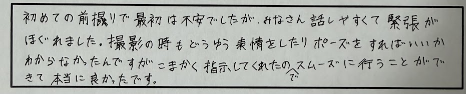 撮影のときもどうゆう表情をしたり、ポーズをすればいいのかわからなかったのですが、