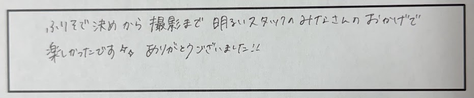 振袖決めから撮影まで明るいスタッフの皆さんのおかげで、楽しかったです✨