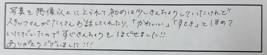 前撮り撮影ありがとうございました!初めは緊張していたと思いますが、