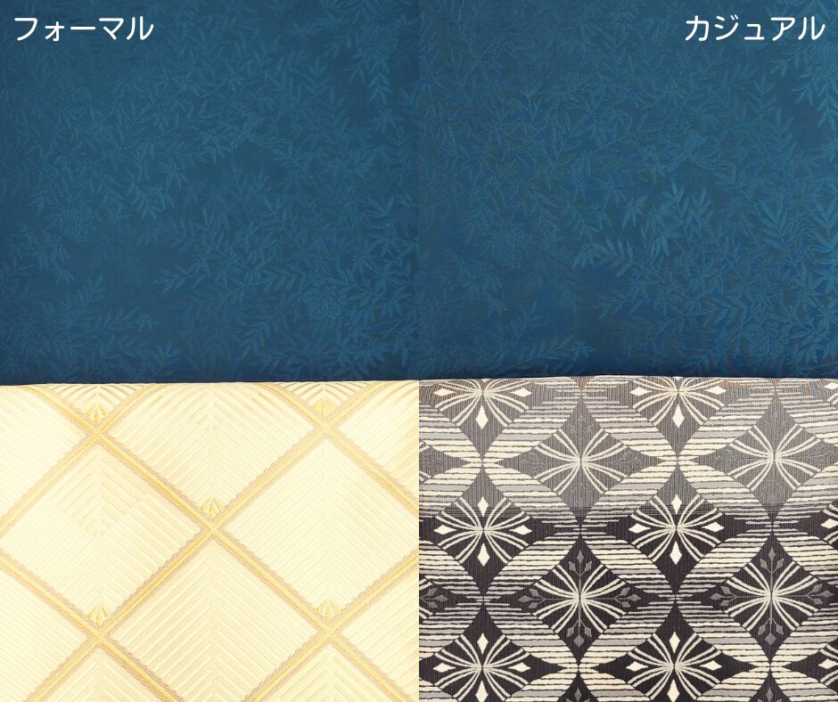 つまり、同じ「色無地」という着物でも、紋があるかないか、合わせる帯や小物によって、カジュアルにもフォーマルにも使えるというわけです。